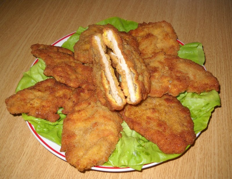 Muschiul de porc se taie in felii potrivite ,apoi se bate usor fiecare felie cu ciocanul de snitele. Se condimenteaza cu sare (vegeta) si piper si se lasa sa stea 15-20 de minute. Ouale se bat cu sare(vegeta) si piper.