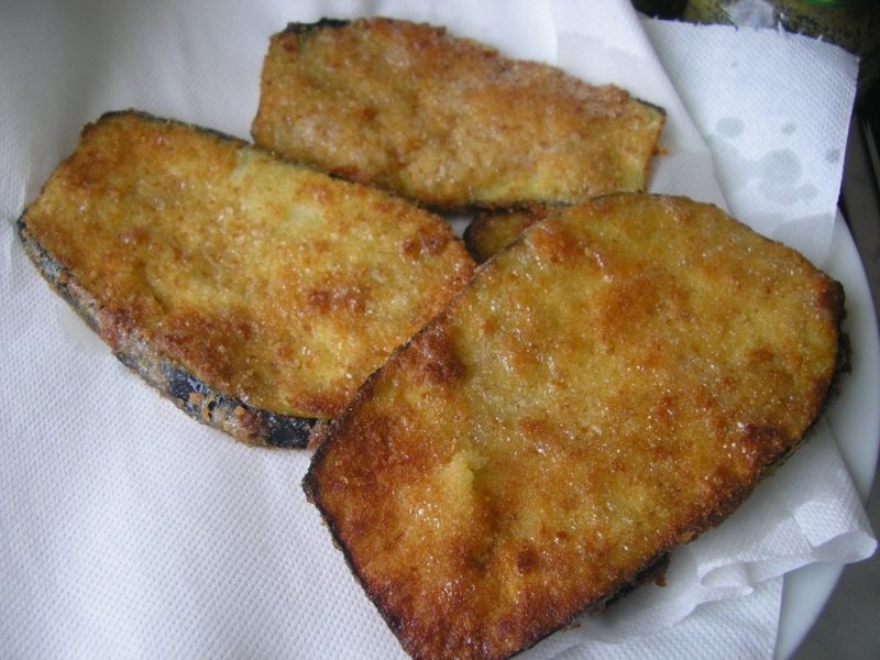 Taiem vinetele pe lungime, le dam cu sare si le lasam circa 1 ora. Spalam si stergem de apa feliile de vanata dupa care le trecem intai prin ou apoi prin pesmet. Luam o tigaie punem uleiul la incins si incepem sa prajim snitelele. Le scoatem pe o farfurie acoperita de hartie de bucatarie dupa care snitelele noastre sunt gata sa fie degustate. Pofta buna!