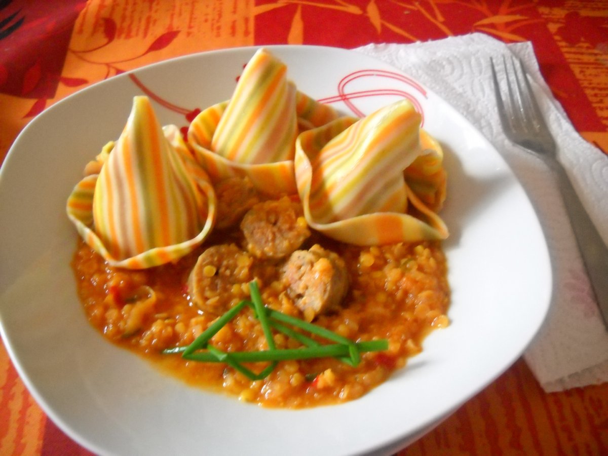 Pentru cine nu are rabdare,se pun toate la fiert si se servesc pe farfurie alaturi de linte dar nu vor mai avea aspectul dorit.
