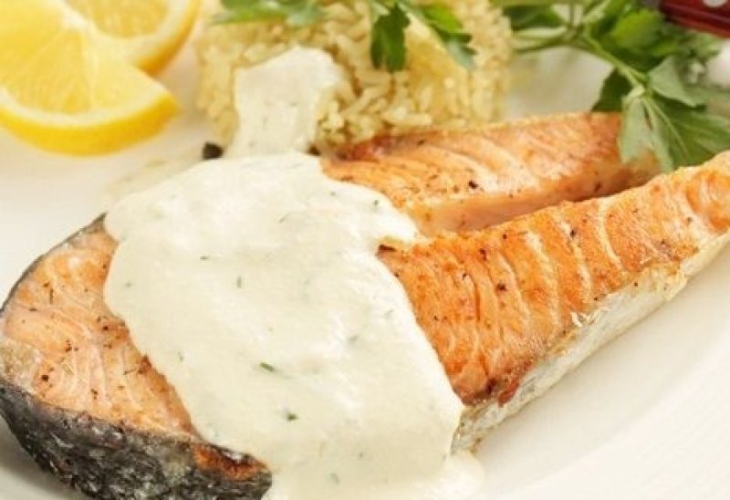 Rondelele de somon se servesc alaturi de orez simplu (fiert cu sare si piper) , sos de smantana si lamaie.