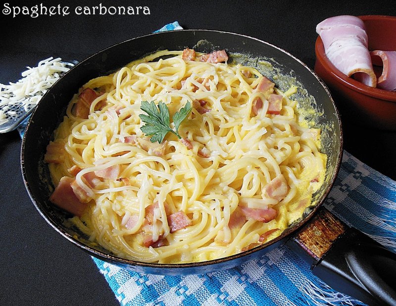 Mod de preparare Spaghete Carbonara rețeta cu smântână: