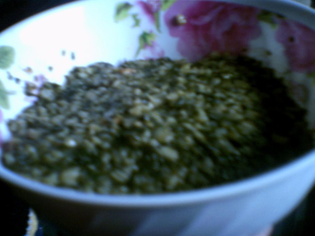 Spanacul se curata se spala in mai multe ape, se fierbe circa 10 minute se scoate si se lasa la scurs (sau luati spanac congelat si il veti pune dupa ce preparati ceapa si orezul).