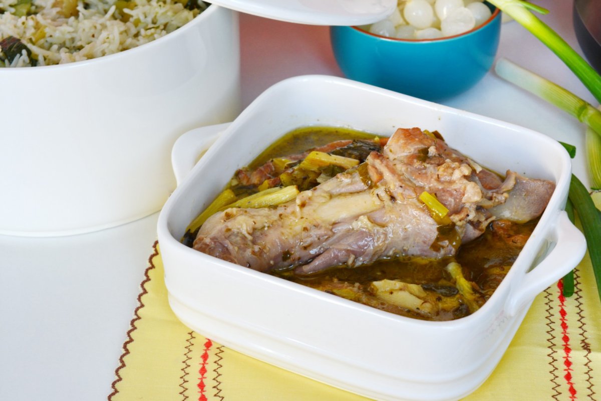 Intre timp se spala si se curata ceapa si usturoiul verde. Se lasa sa se scurga si se taie in bucati de 3 cm. Patrunjelul si menta se toaca fin.