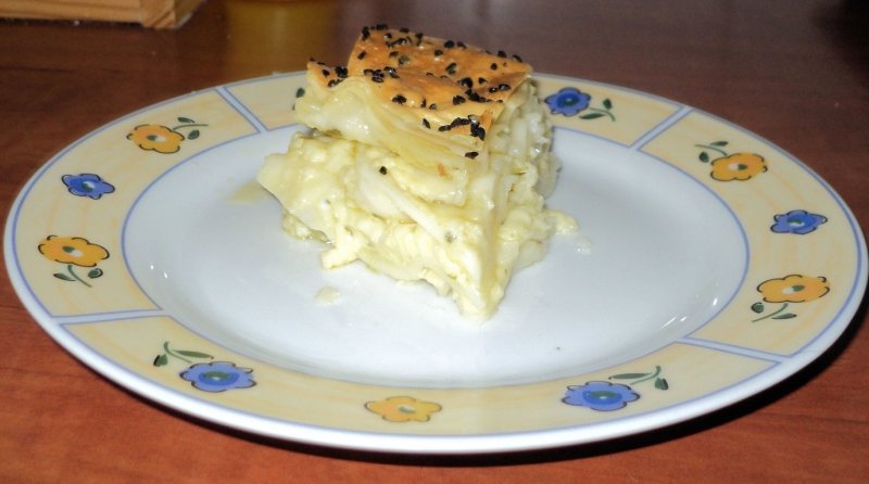 12.Dupa ce ati pus 3 foi se presara amestecul de branza si se continua cu foile.