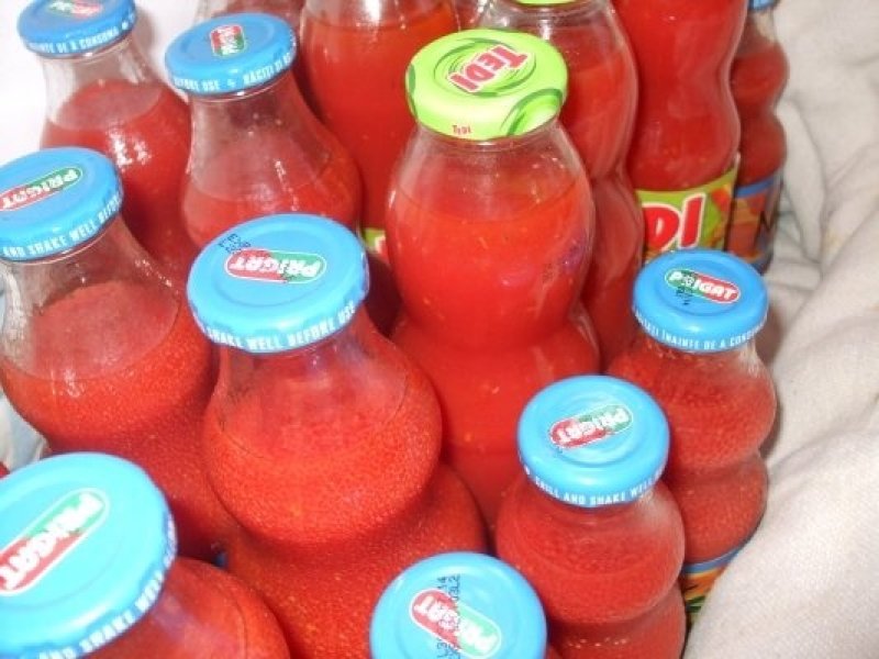 Se spala rosiile, se indeparteaza cotoarele si partile vatamate, se toaca si se dau prin masina speciala care separa semintele si cojile sau se dau prin blender pana se toaca bine. Sucul astfel obtinut de pune la fiert intr-o oala corespunzatoare avand grija ca in timpul fierberii se umfla si formeaza spuma care nu se indeparteaza. Se fierbe circa 2 ore sau pana scade si are consistenta dorita , se adauga sarea si zaharul . Dupa fierbere, cu ajutorul unei palnii se pune in sticle curate si uscate, fierbinte. Se invelesc bine in paturi si se lasa asa acoperite pana se racesc.