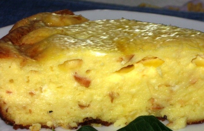 Se rade casul si se amesteca cu ouale batute bine.Se adauga smantana,laptele si apoi faina sub forma de ploaie.Se amesteca bine si daca este nevoie se mai adauga sare(eu nu am mai adaugat pentru ca era sarat casul).Compozitia de mai sus se toarna intr-o forma unsa si tapetata cu faina si se da la cuptor pentru circa 30-40 min.
