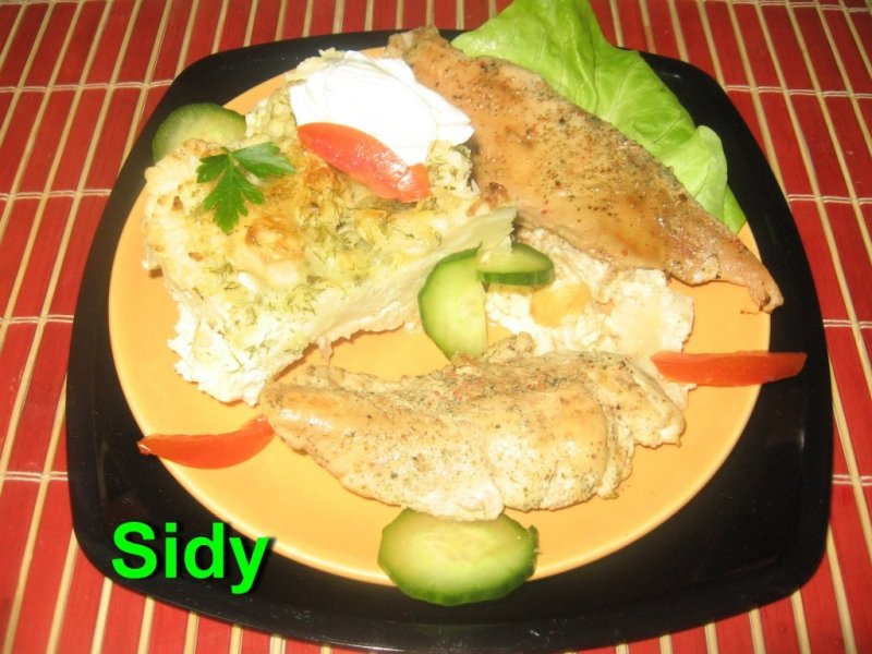 Servim sufleul cu gratare de pui linga si cu iaurt degresat deasupra.