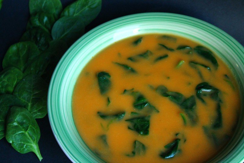 Cand legumele au fiert, le trecem prin blender, apoi adaugam spanacul, iar daca supa este prea groasa, se poate adauga putin din apa unde a fiert spanacul.
