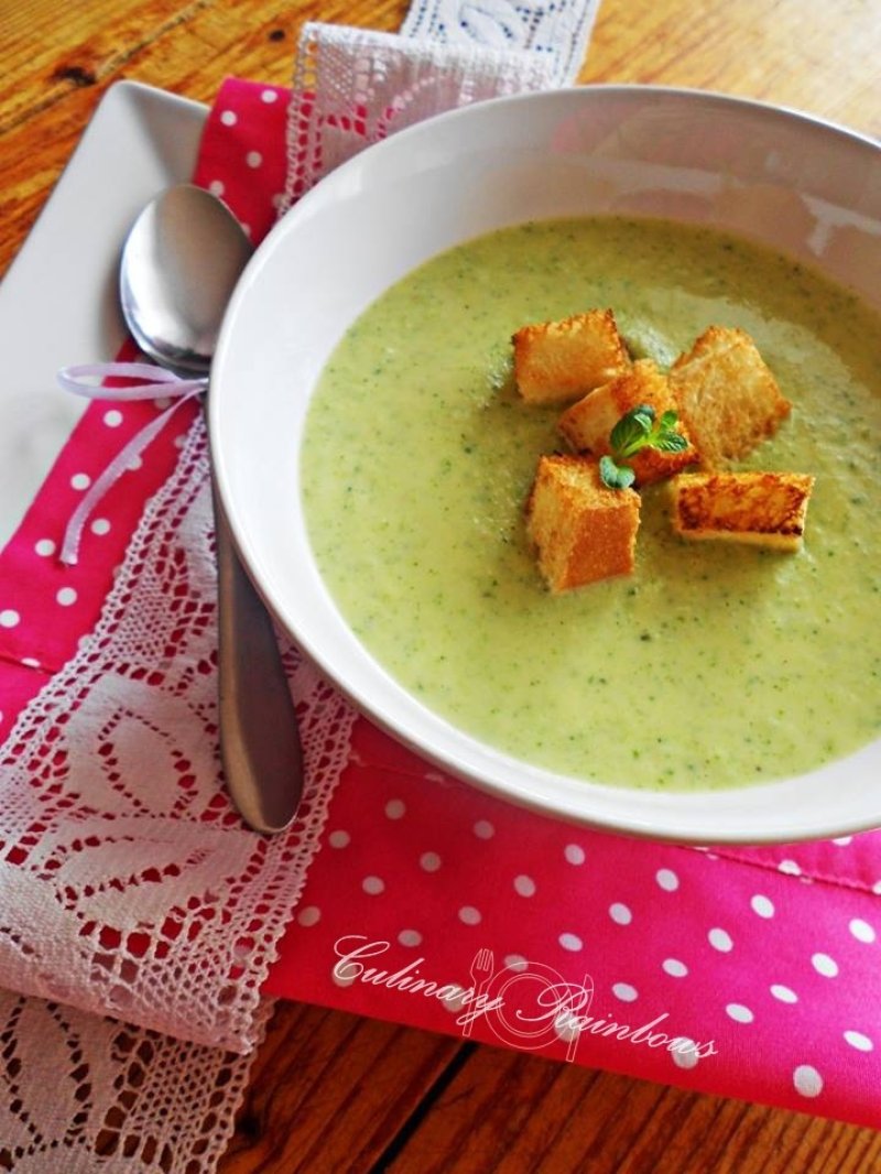 Treptat adăugați din supa de legume până când veți ajunge la consistența dorită. Potriviți supa de sare și piper și serviți-o cu crutoane.