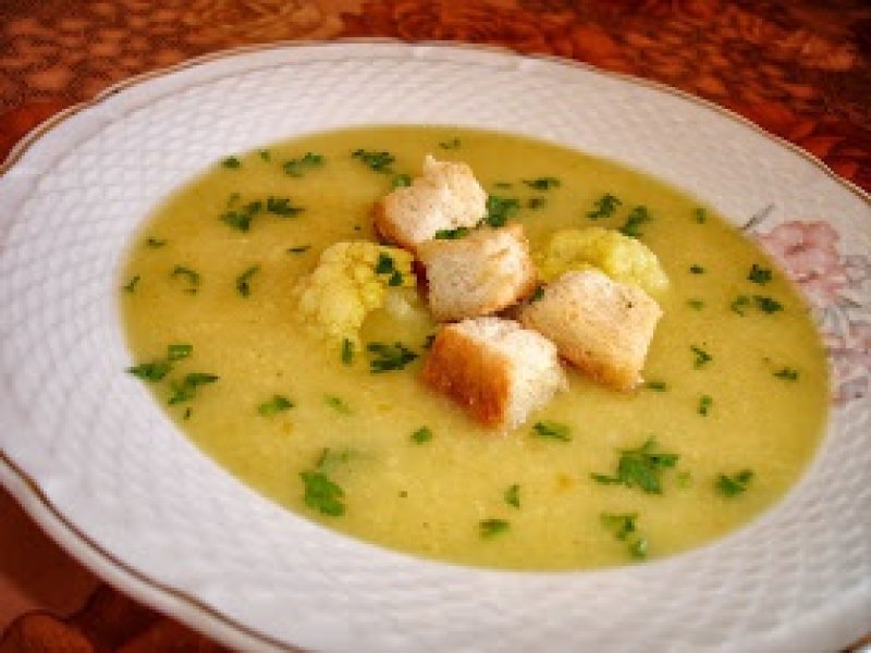 Calim ceapa dupa care adaugam morcovul ras si apoi celelalte legume taiate potrivit. Conopida o desfacem buchetele si o lasam in apa cu sare si otet. O spalam si o adaugam in oala.. Cand sunt fierte legumele le strecuram, oprim cateva buchetele pentru decor, restul le pasam si le adaugam inapoi in zeama ramasa. Taiem cubulete o paine mai veche, o stropim cu unt topim si o dam putin la cuptor. Servim cu patrunjel, crutoane si conopida oprita. O alta varianta ar mai fi sa pasati trei sferturi din legume si restul lasate intregi. Mai puteti drege supita cu 2-3 linguri de zeama de lamaie amestecata cu 100 ml smantana, o lingura de faina si un galbenus de ou. Se pun cateva linguri de supa peste amestec dupa care se adauga in oala, nu se mai fierbe pentru ca se taie.