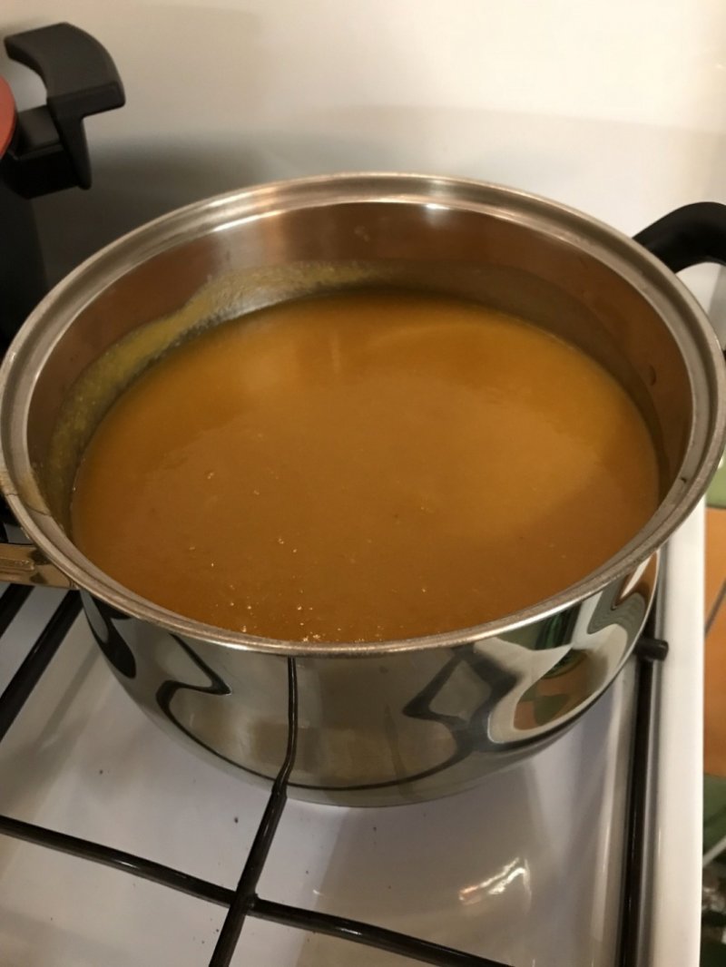 Etapa 4: Amestecul mixat se pune din nou la fiert cu un praf de sare.