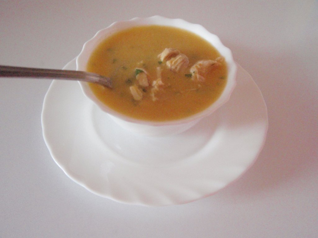 Se fierbe carnea in 5 litri de apa 45 de minute apoi se scoate si se taie cubulete. In zeama de pui se adauga legumele (daca mai este nevoie se mai adauga apa) se fierb 20 de minute si apoi se paseaza la blender sau manual. Se omogenizeaza, se incorporeaza laptele, se adauga carnea de pui, se condimenteaza iar la sfarsit se adauga patrunjelul.