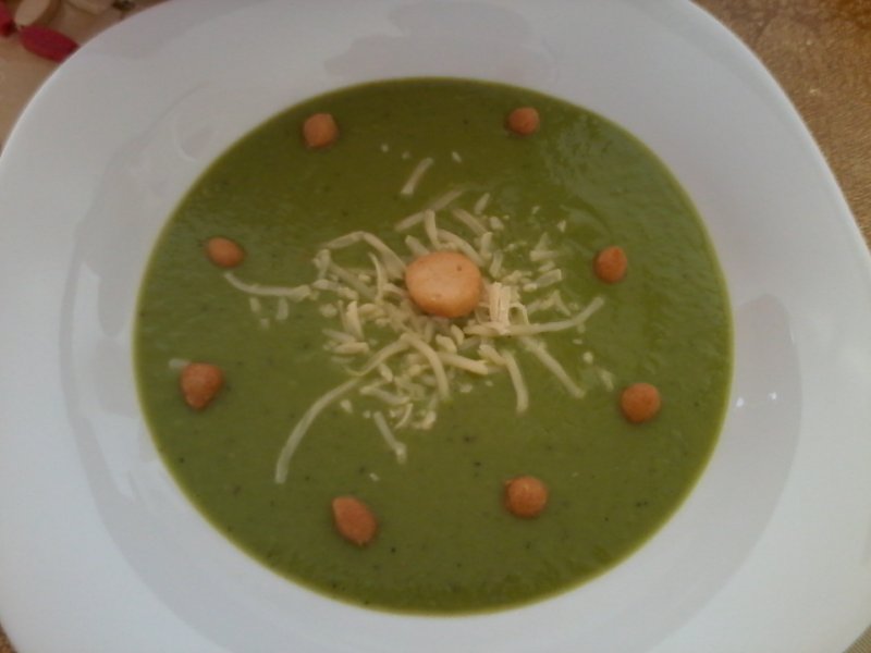 Dupa ce s-au fiert, scurgem legumele de zeama, pe care o pastram si le punem intr-un bleneder, unde mai adaugam, sarea, piperul, untul, si cimbrul si mai vreo doua polonice de zeama in care au fiert legumele. Lasam blenderul sa isi faca treaba pana cand totul devine o pasta.