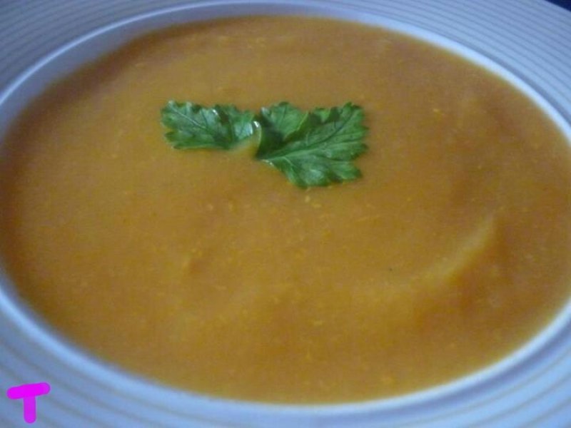 Se taie legumele cubulete si se calesc in unt. Se adauga supa peste ele si se lasa sa fiarba 15 minute dupa care se paseaza legumele cu ajutorul unui blender sau al unui tel. Se adauga cca 1/2 cana lapte in functie de consistenta pe care o dorim, mai fluida sau mai densa. Se repune la fiert pentru inca cateva minute. Se condimenteaza dupa gust cu sare si piper. Inainte de servire se adauga patrunjelul.Se serveste cu smantana si crutoane. Pofta buna!
