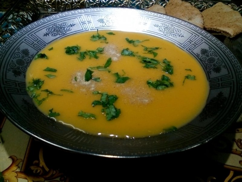 Astfel supa crema este pregatita pentru servit.Adaugam putin piper proaspat macinat si patrunjel taiat. Aceasta reteta e foarte simpla si usor de gatit.Ghimbirul si piperul alb ii va da supei o aroma deosebita.