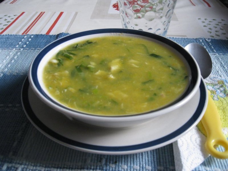 Intr-o oala cu apa punem bucatile de peste si cand incepe sa fiarba mai lasam 5 min. Scoatem pestele deoparte si lasam sa se raceasca putin iar apa se strecoara si se pune din nou in oala. Intre timp se curata cartofii si morcovi se taie in bucati potrivite, prazul se taie si se separa partea alba de verde. Partea alba se taie in bucati potrivite si se adauga la oala impreuna cu cartofi si morcovi. Apa de la peste trebue sa fie cu 2 degete deasupra legumelor. Fierbem cu capac pana legumele sunt fierte. Cu ajutorul unui blender facem crema. Cat timp legumele fierb scoatem pielita si oasele de la peste si se rupe carnea bucatele mici, se spala partea verde de la praz si sa taie juliana. Dupa ce am facut crema punem pe foc oala, adaugam bucatelele de peste, prazul verde si apa fierbinte dupa cat de cremoasa vrem sa fie supa. Lasam sa fiarba cca. 10min. pana ce prazul e fiert. Cu 1-2min. inainte sa stingem focul punem uleiul de masline, piper si sare dupa gust. Aceasta supa in interiorul Portugaliei se obisnueste sa se serveasca fierbinte in timpul iernii. Iarna portugheza nu este foarte frig cum in Romania, ei planteaza prazul toamna si asa au praz proaspat toata iarna. Aceasta supa se poate face si cu alte tipuri de peste oceanic. Va urez pofta buna!