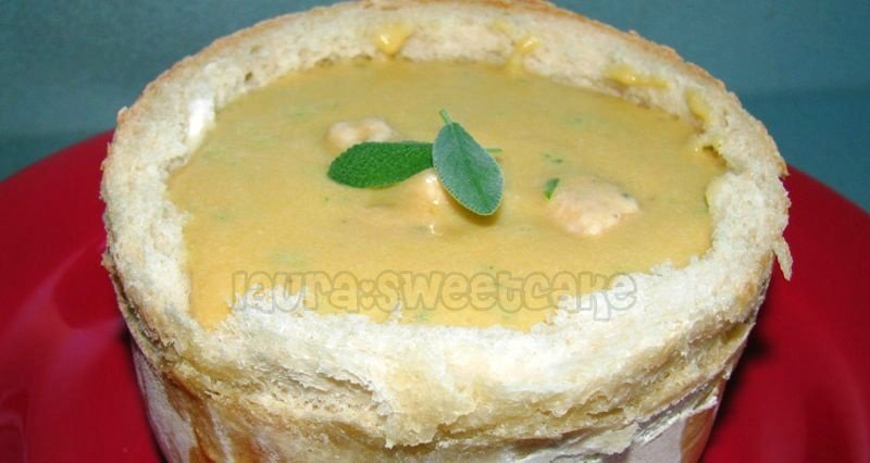 Dupa cele 50 minute de fiert, da supa prin blender pana cand devine omogena. Incorporeaza apoi smantana amestecata cu galbenusurile si ierburile aromate. Adauga in supa pieptul de pui prajit cu untul topit si amesteca.