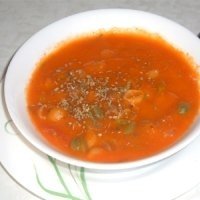 Se fierb morcovii si cartofii. Cand sunt jumatate fierti adaugam ceapa si ardeiul ardeiul si continuam fierberea. Apoi adaugam rosiile decojite si pasate si fierbem totul inca 10 minute. Cand s-au fiert toate, luam supa de pe foc, adaugam frunzele de telina, sarea si uleiul. Apoi, se scot legumele si paseaza cu mixerul, dupa care se rastoarna in zeama din oala. Se poate servi calda sau rece. Cand se pune in farfurie sau in bol, se orneaza cu un strop de smantana si patrunjel verde taiat marunt.