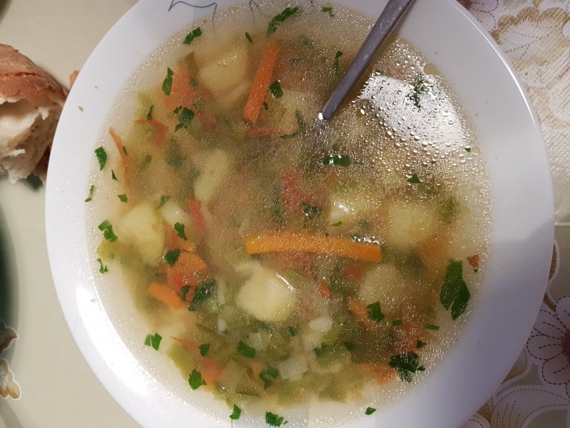 Se inabusesc toate legumele, cu uleiul putina apa, sarea si piperul, se adauga apa si se lasa la fiert cu capacul. Bulionul se pune la fiert spre final. Cand oprim focul, adaugam verdeata.