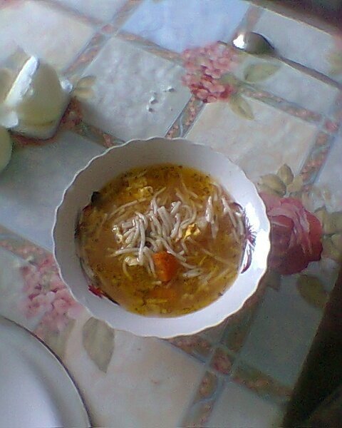 Se taie cartofii cubulete si se spala, morcovul, ceapa la fel cubulete. Se pun intr-o oala de ciorba si o punem la foc adaugam si partile componete de la gaina (eu am adaugat spatele, pipota, pulpele). Dupa ce au fiert, la sfarsit, punem borsul o cana, bulionul si patrungelul si il potrivim de sare.