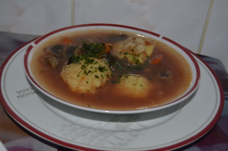 Cand legumele sunt fierte se ia cu o lingura compozitie din castron si se da drumul in oala peste legume,este bine ca atunci cand dati drumul la galuste in oala sa dati focul la mic,asa nu se vor imprastia galustele in oala,se mai adauga sare dupa gust,bulion de gogosari.Se fierbe la foc potrivit,chiar mic daca aveti timp,nu amestecati in oala pana nu fierb.Cand sunt fierte se adauga sucul de rosi si se mai lasa pret de vreo cinci minute sa mai traga doua-trei clocote si se poate servi.Este o reteta absolut delicioasa ce inlocuieste carnea si poate fi mancata oricand sau o poti pune pa masa la o mare sarbatoare pentru a-ti impresiona oaspetii.Sa aveti pofta si la pofta dragilor!