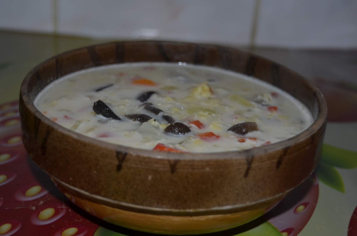 Se pun nucile caju la blender, se adauga apa plata si se mixeaza pana se obtine un lapte care se toarna in oala cu supa, se amesteca si se poate servi, este o reteta dietetica, dar cu un gust foarte bun.