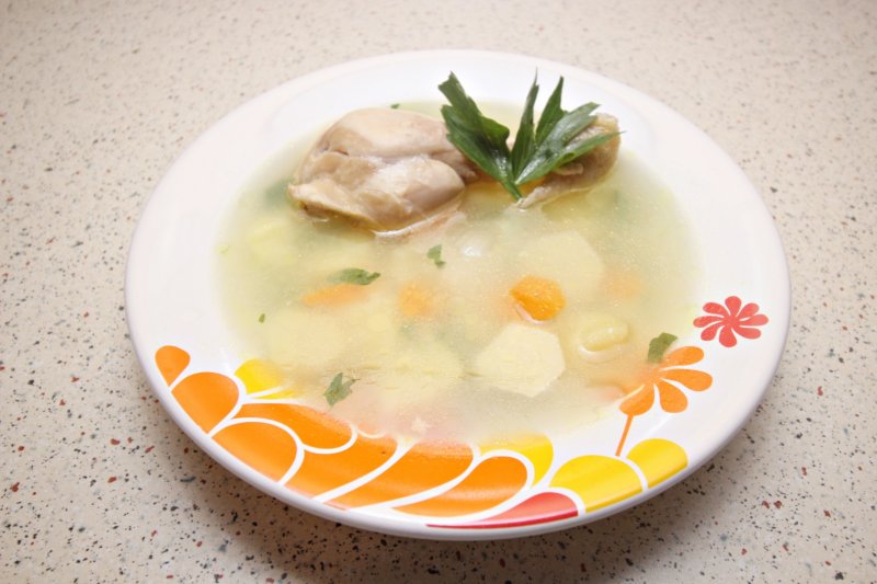 Curatam zarzavaturile si impartim carnea in 4 bucati, o spalam si o punem la fiert la foc domol cu o lingura de sare.