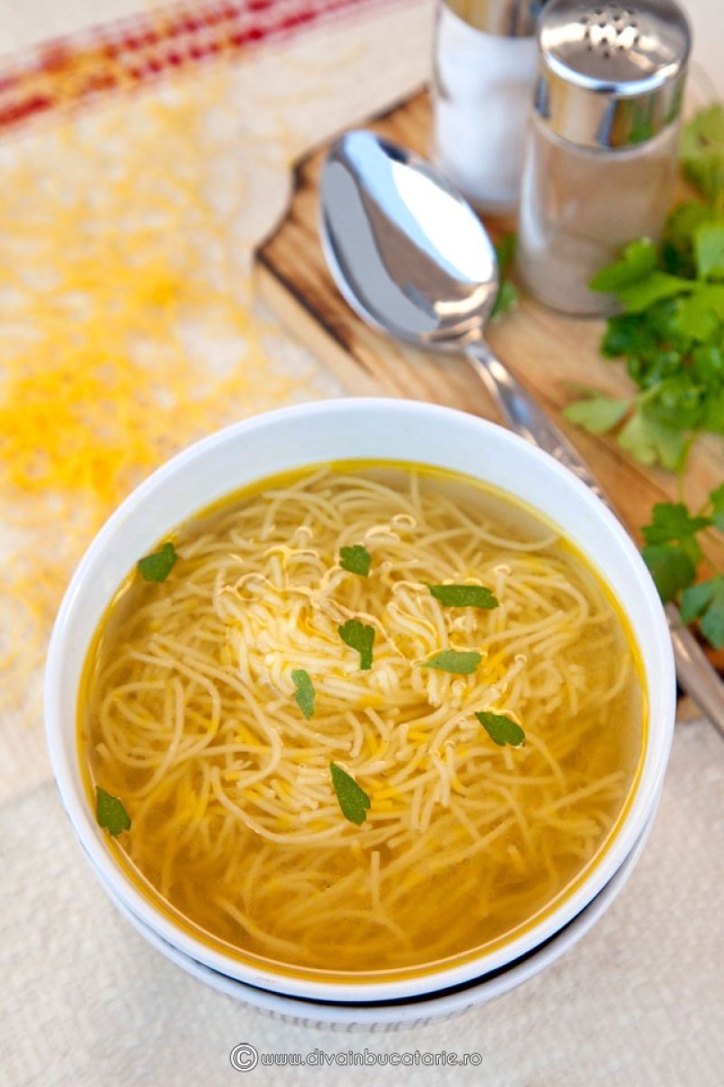 Strecuram Strecuram supa cand carnea si legumele sunt fierte. Pregatim fideaua pentru fiert. O fierbem conform instructiunilor de pe pachet in supa strecurata. Cu riscul de a ma repeta folosim doar supa si fidea pentru cate portii se servesc la masa respectiva.