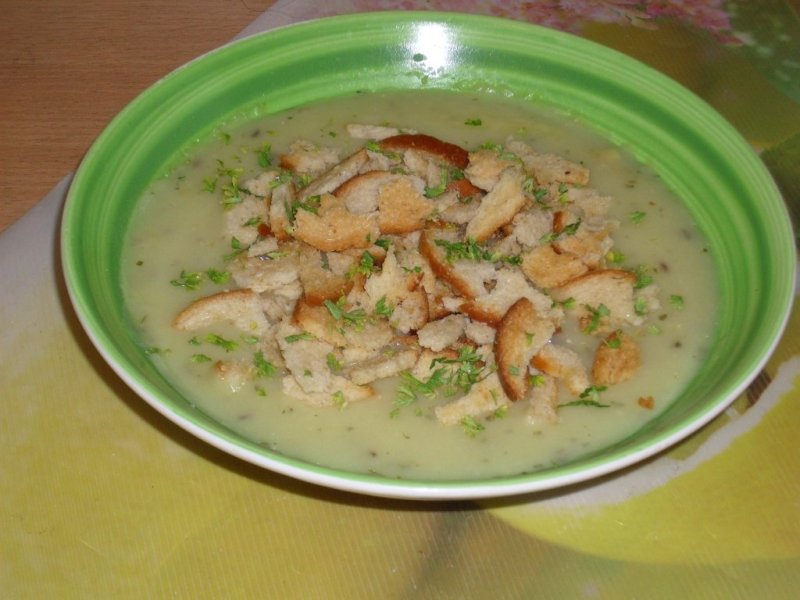 Se curata si se zdrobeste usturoiul,apoi se topeste untul si se caleste usturoiul in el; se adauga faina si se amesteca. Adaugam 1,5 l de apa, apoi spalam cartofii si ii taiem in bucatele, ii punem in oala si ii lasam sa fiarba pana se inmoaie.Se ia supa de pe foc,se adauga amestecul de legume , chimen, sare si patrunjel si se paseaza cu blenderul. Se rup in bucatele bake rolls-urile si se adauga la fiecare portie de supa si serveste cu putin patrunjel verde, tocat, deasupra.