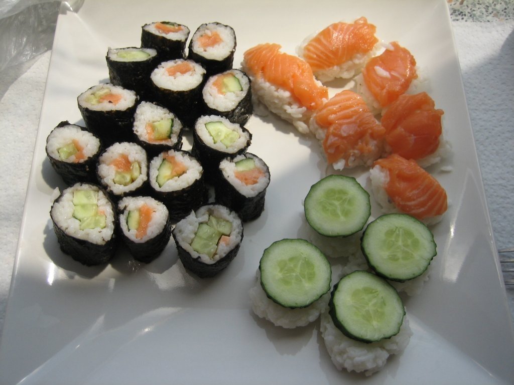 La fel de usor puteti folosi si castravetele sau puteti face niste "chiftelute" de orez peste care sa asezati pestele sau castravetele si sa le serviti cu wassabi si sos de soia.