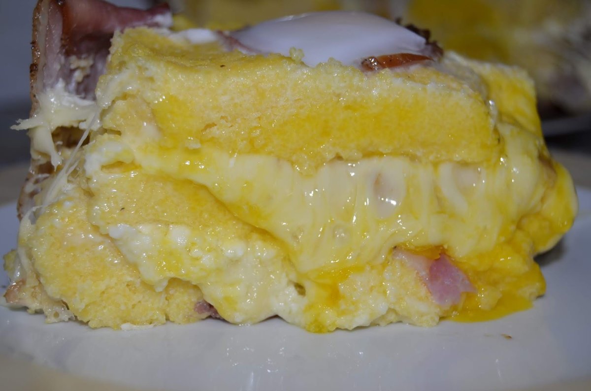 Se ia o tava cu fund detasabil si se orneaza tava cu felii de sunculita, asa cat sa cuprinda toata tava si sa iasa chiar putin feliile din tava, se pune un strat de mamaliguta ce se intinde cu lingura, se presara branza data prin razatoare, cascaval dat prin razatoare si se trece la pasul urmator, adica se mai intinde un strat de mamaliguta, se pune iarasi branza si cascaval si iarasi un strat de mamaliguta. Se ia cu o lingura mamaliguta din ultima foaie si in locul ei se pune cate o felie de sunculita crud uscata si cate un ou, daca oul este prea mare, se mai renunta la putin albus. Se da tava la cuptor la foc mare pentru circa 30 minute sau pana cand ouale sunt facute si sunculita se rumeneste usor. Se scoate tava din cuptor, se portioneaza si se serveste simpla sau cu smantana, depinde de gust si preferinte. Sa aveti pofta, dragilor!