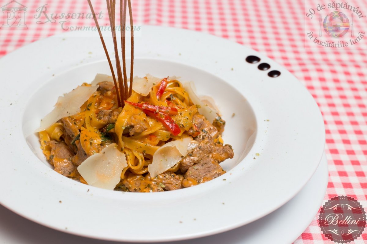 Reteta italiana ”Tagliatelle con vitelo” a fost oferita si preparata de Bellini Tineretului si poate fi degustata zilnic la restaurantul cu specific italian din Bulevardul Gheorghe sincai, nr. 2-4, Sector 4, Bucuresti.