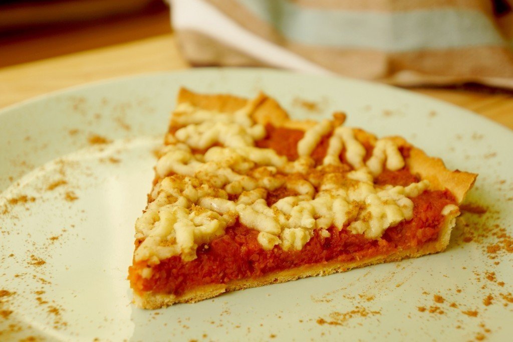 5.După 15 minute scoatem aluatul şi adăugăm dovleacul călit (15 min la foc mic cu 1 lingură de zahăr şi 1 linguriţă de scorţişoară).Am ras deasupra şi puţin aluat;dar merge şi fără.