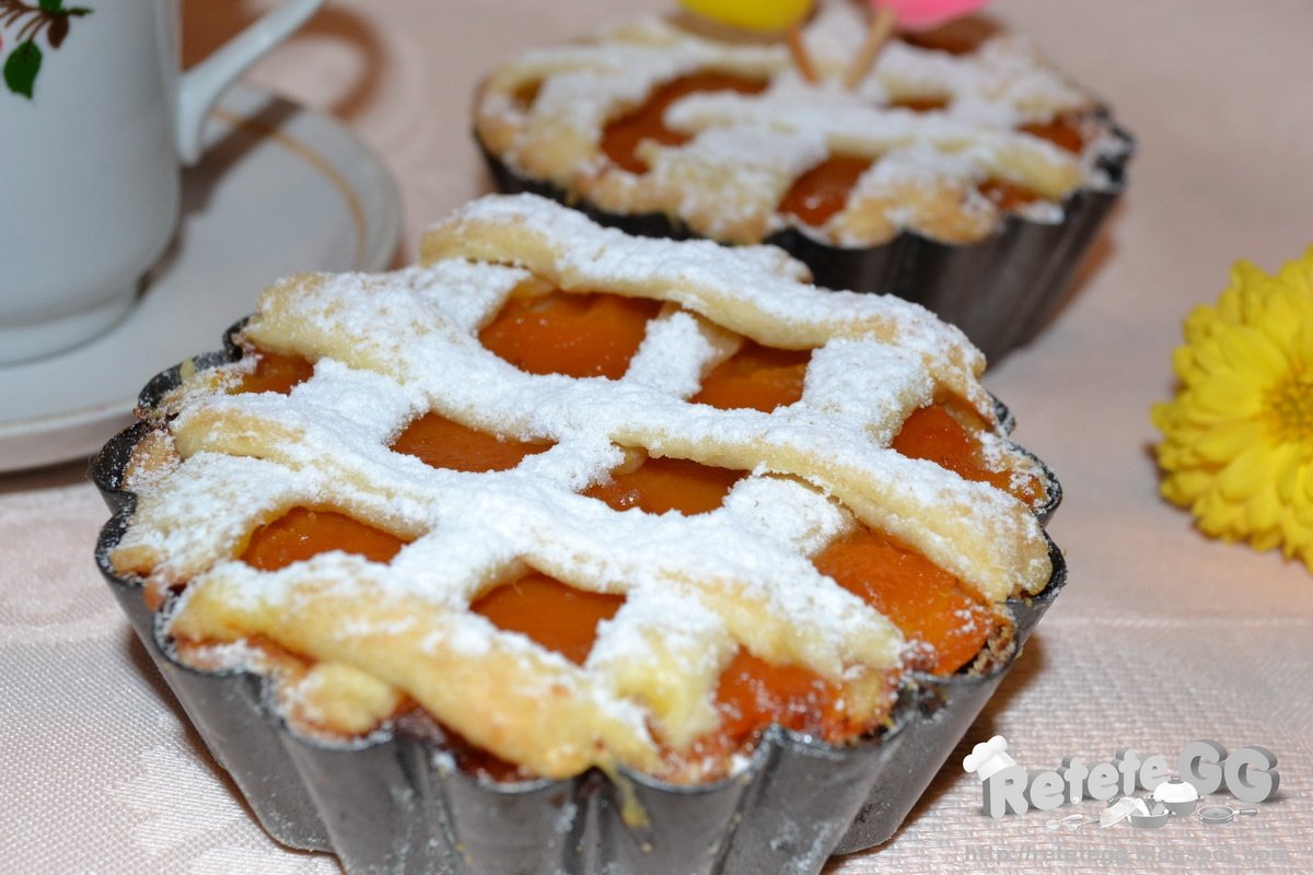 Peste aluatul din forme am pus umplutura de dovleac, iar deasupra am folosit fasiile de aluat sa 'decorez' putin tartele :)