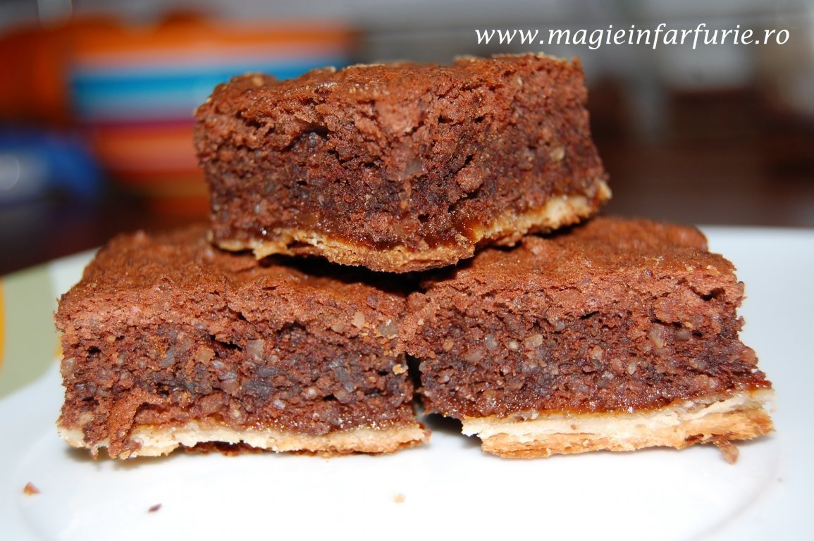 Blatul racit se unge cu gemul si apoi se toarna bezeaua cu nuci.