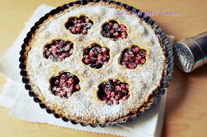 Scoatem tava din cuptor si dupa ce s-a racit putin tarta, presaram deasupra zahar pudra.