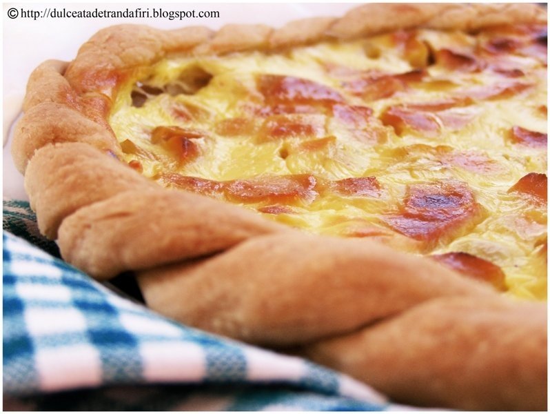 Este o tarta pe care am mancat-o prima data la o prietena, delicioasa alternativa la mancarurile greoaie din preajma sarbatorilor. E foarte parfumata si usoara si, desi multora combinatia carne-fructe nu le suna prea simpatic, te asigur ca va schimba convingeri dintre cele mai statornice.