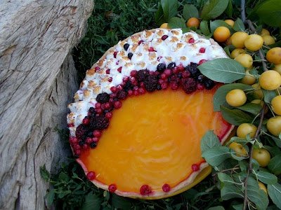 Jeleul de corcoduse il vom face cu ajutorul unui plic de praf de budinca,conform instructiunilor,inlocuind laptele cu sucul de corcoduse galbene.Pentru asamblarea tartei,vom turna in coaja de tarta mouse-ul de fructe de padure si deasupra jeleul de corcoduse,dupa care vom introduce la frigider pentru 3-4 ore.