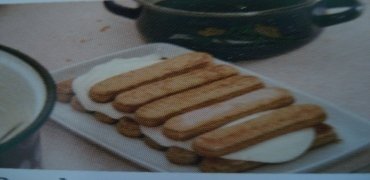 Piscoturile se inmoaie in cafea, apoi se asaza pe un platou intr-un rand, se pune un strat de crema deasupra si se repeta operatia.