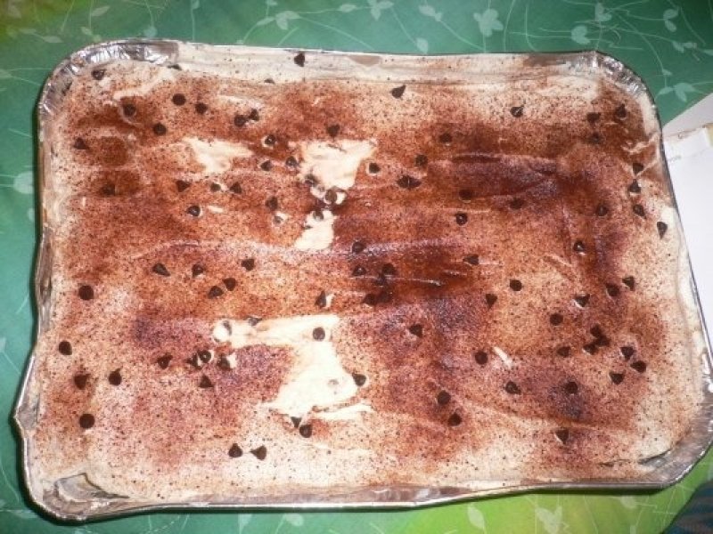 Se amesteca 5 galbenusuri cu 500g mascarpone si 1/2 cana de zahar. Separat se bat albusurile spuma, se adauga prima compozitie plus panna dulce, se invarte pana se omogenizeaza bine piscoturile. Se pun pe o parte si pe alta in cafeaua indulcita cu 1-2 lg de amaro lucano (nu se inmoaie tot in cafea), se pune prima un strat de piscoturi, apoi un strat de crema, un strat de piscoturi si altul de crema, iar pe deasupra cacao.
