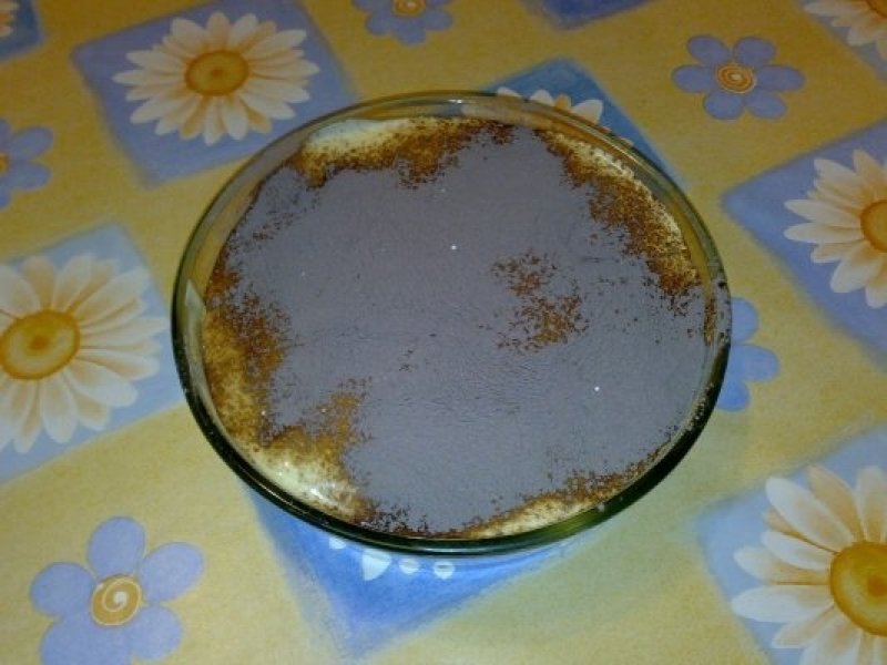 Insiropati ft putin savoiardi in cafea si asezati-i intr-un vas (eu folosesc yena), iar deasupra crema si tot asa un strat de biscuiti si unul de crema pina le terminati pe amaindoua. Deasupra spulberati cacao amara.
