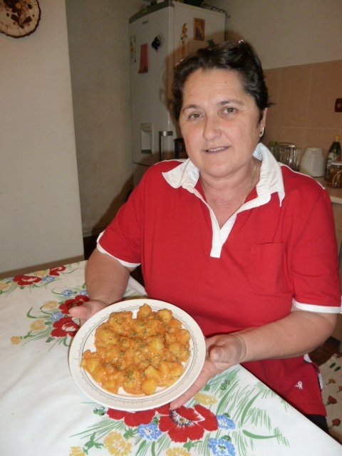 Se spala cartofii, se curata, se taie cubulete (1cm -2cm). Se taie ceapa solzisori si ardeiul.