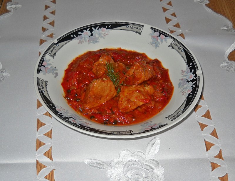 Adaugam ardeiul copt tocat bucati mai mari, lingurita de bulion,frunza de dafin ,condimentam si lasam sa scada tocanita.