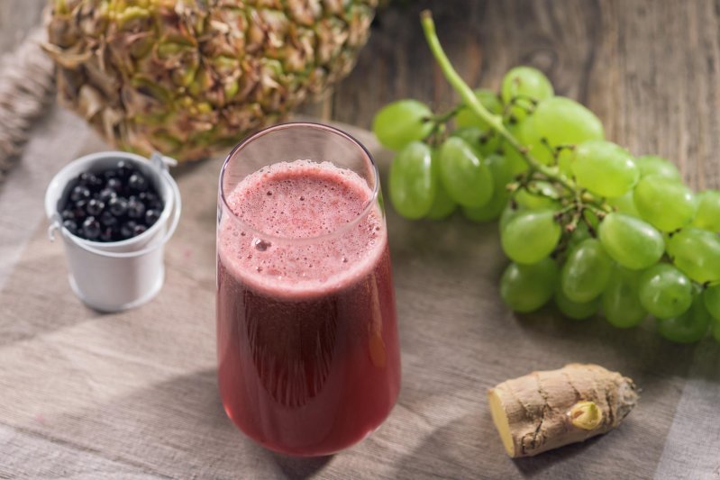 Decojiti ananasul si scoateti ciorchinii strugurilor.