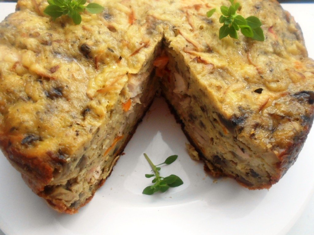 Am scos oala multicookerului,am tapetat-o cu ulei si faina,am pus in ea amestecul descris mai sus,am mai ras deasupra branza afumata,am pus oala in aparat,am setat functia BAKE,apoi temperatura 180 grade cu un timp de 45 minute si…mi-am vazut de celelalte treburi casnice pana cand multicookerul a gatit tortul aperitiv. :)