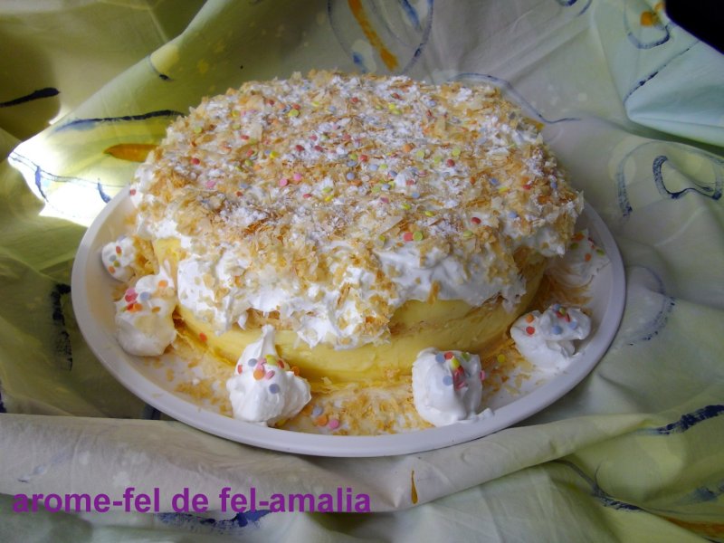 Cand eram copil nu era usor sa tii o petrecere. Dar mama gasea intotdeauna resurse si ne incanta, pe mine si pe fratii mei, cu mancaruri delicioase si mult-iubitul "Cremes". Era si va ramane prajitura mea preferata. Anul acesta, de ziua mea, am incercat sa il imbrac intr-o haina noua, de sarbatoare. Sper sa va placa ceea ce a iesit.