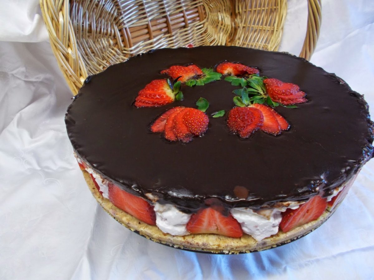 Iaurtul se amesteca cu zaharul pudra.Frisca se bate spuma.Capsunile se taie cubulete.Gelatina trebuie hidratata in putin lapte dupa cere se topeste. Amestecam toate aceste ingrediente si apoi toata compozitia se pune peste blatul de biscuiti.Dam la rece 5-6 ore.Eu am asezat pe marginea formei de tort felii de capsuni dupa care am pus crema.