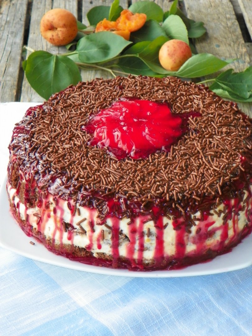 Ornam dupa placul fiecaruia.Eu am ales varianta ......ornamente de ciocolata si felii de caise glasate
