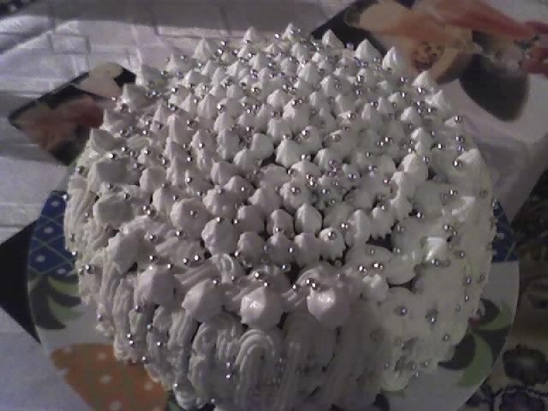 Pt crema:amesteci toate ingredientele si le pui pe foc,le lasi citeva minute pina se ingroasa crema.Ungi foile cu aceasta crema ,ornezi tortul si apoi dai totul la rece.