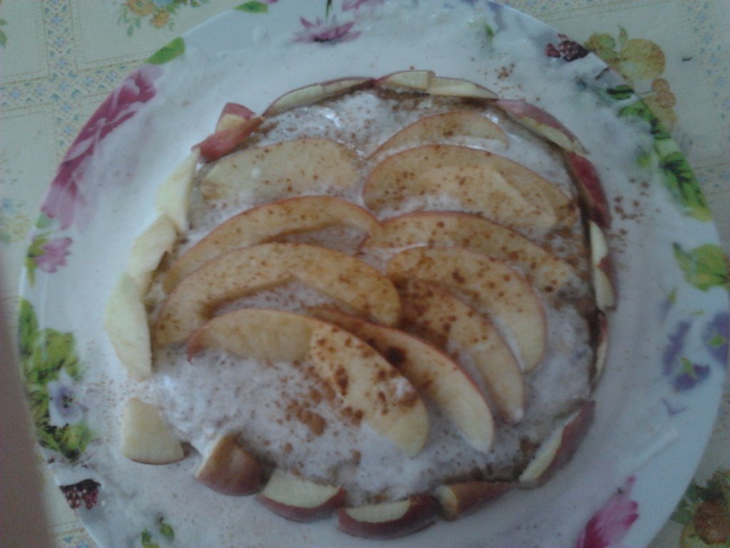 Pui stafidele la inmuiat in rom si apoi pisezi biscuitii. Cureti merele si le razuiesti. Presezi bine merele de zeama pe care si-o lasa si amesteci cu stafidele, biscuitii, nucile macinate, zaharul pudra si razatura de lamaie. Aranjezi amestecul pe un platou si il decorezi cu frisca sau cu glazura alba ( am postat reteta ) si felioare de mere. Dai la rece 30 de minute.